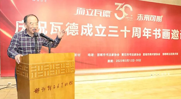 紙書秦磚,墨透漢瓦。 而立瓦德,未來可期。 這是邯鄲藝術界一場別開生面,前所未有的書畫聯誼大展。來自邯鄲、黃石、宣城三地書法家、美術家匯聚古城,展出了他們精心創(chuàng)作的書畫作品。 3月14日15:18開幕式正式開始。