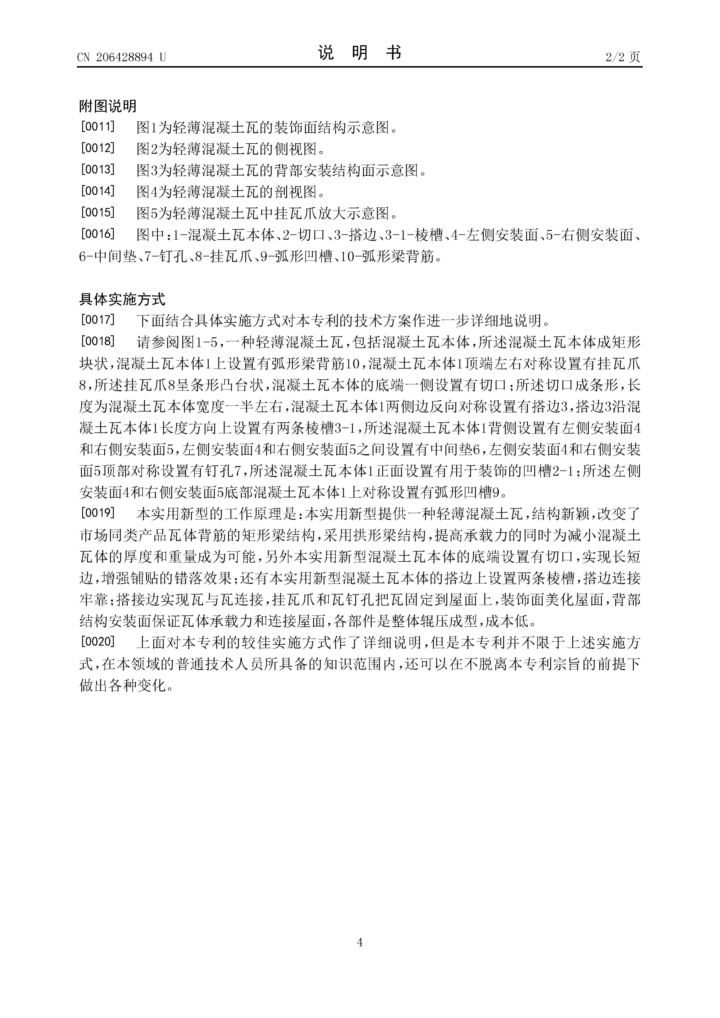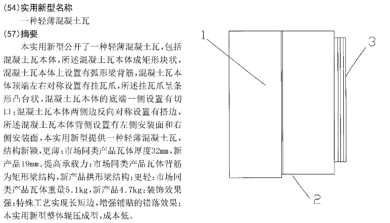 5.根據(jù)權(quán)利要求1所述的輕薄混凝土瓦,其特征在于,所述左側(cè)安裝面和右側(cè)安裝面底部混凝土瓦本體上對(duì)稱(chēng)設(shè)置有弧形凹槽。